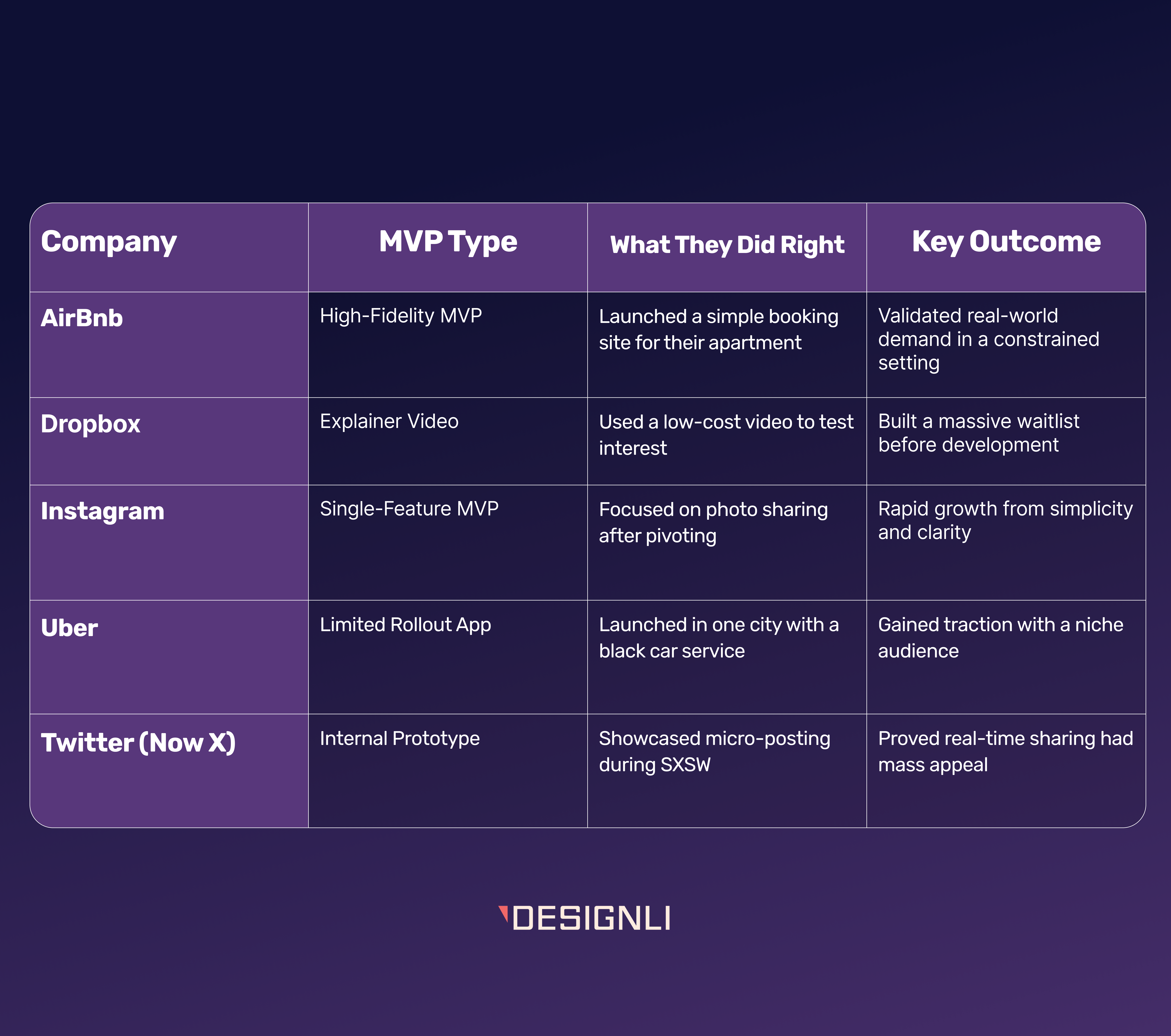Here’s a table to show how billion-dollar MVPs validated their ideas: