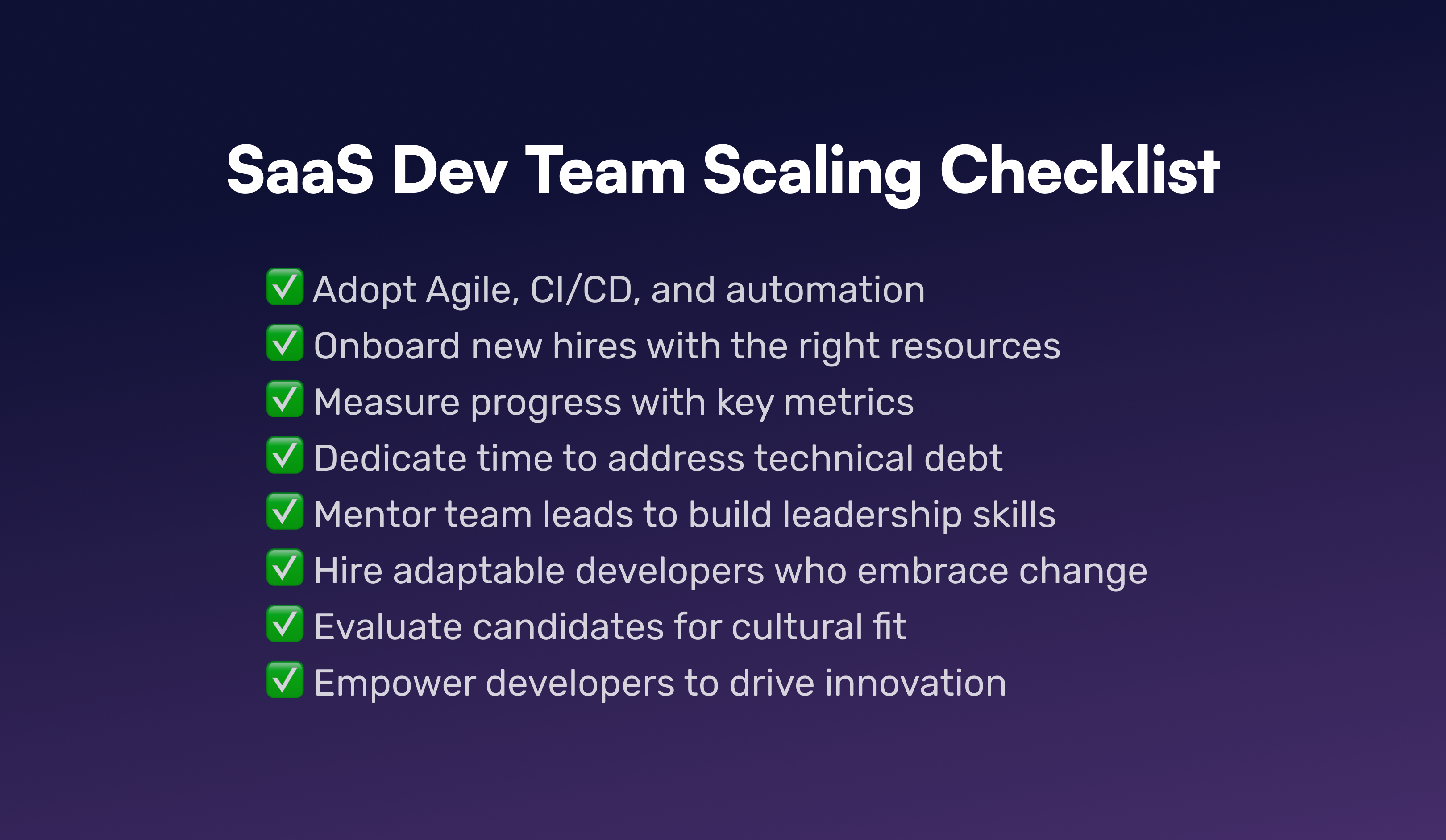 Scaling your dev team isn’t just about adding more engineers; it’s about expanding leadership, refining processes, and keeping quality high as complexity grows. As a founder, your scope widens quickly, and staying close to every decision, priority, or piece of code becomes harder.