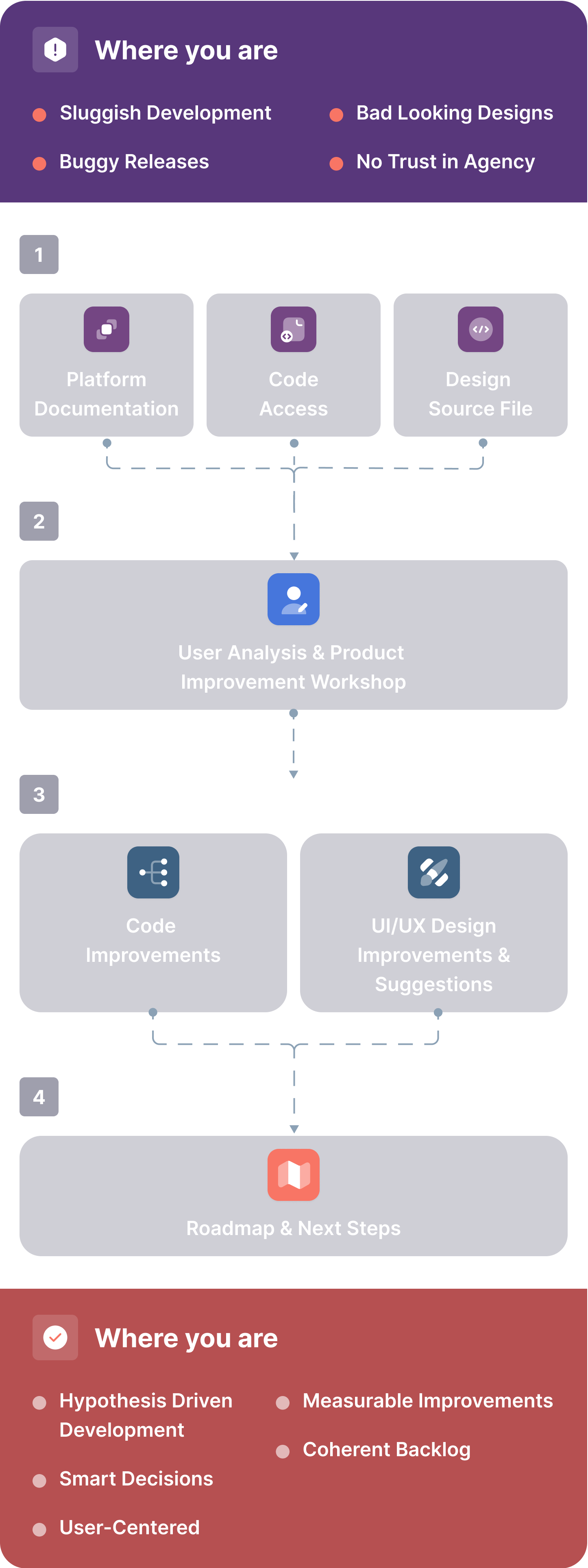 Designli's Impact Week is designed to help you understand why. We’ll audit your code and design system, learn about your biggest challenges, and chart a clear path forward. You’ll receive personalized advice from a senior designer, developer, and product owner—delivered through workshops and tangible outputs that will help you build a better software product. Two participants will be awarded a full SolutionLab: a two-week extension to these activities valued at $13,800.