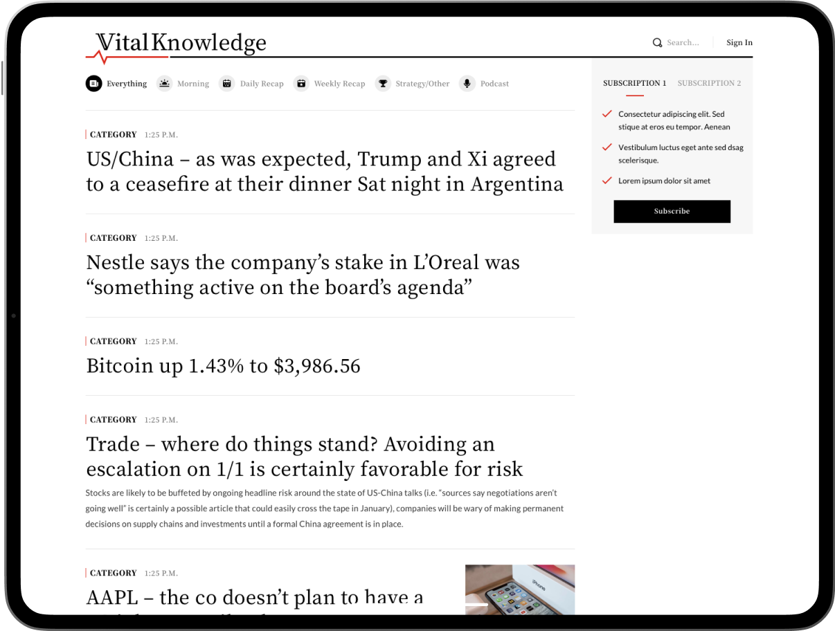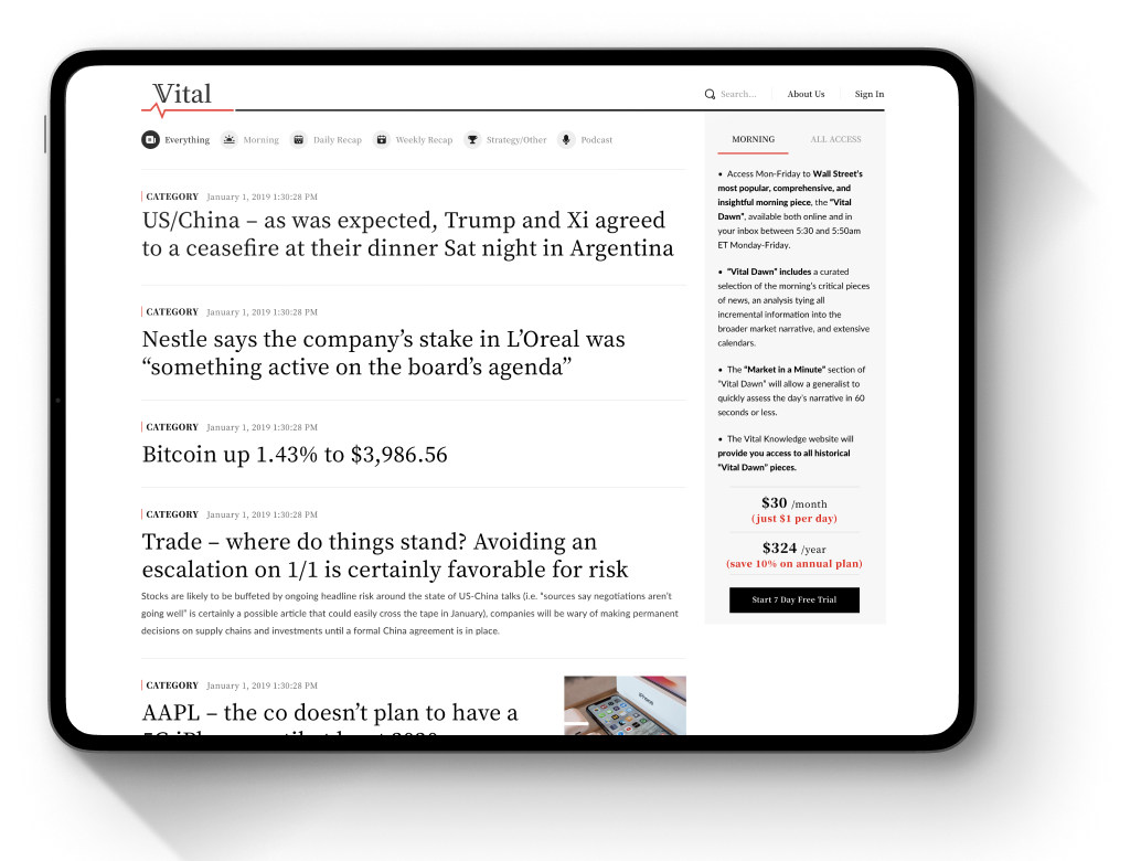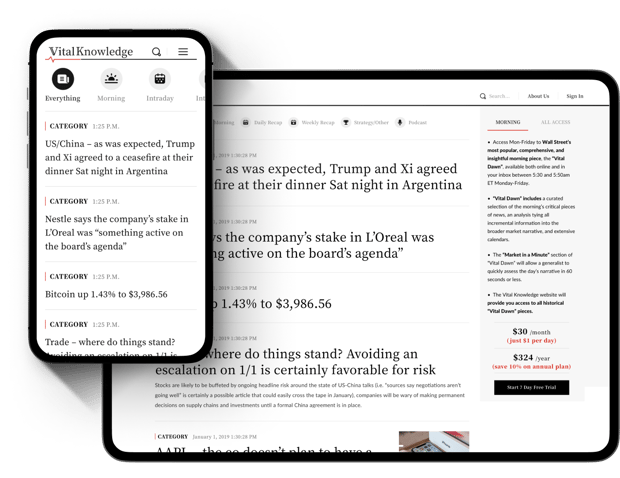 He wanted Vital Knowledge to capture the narrative of the market, curating critical news and information alongside original analysis that helps investors navigate the increasingly noisy media landscape.