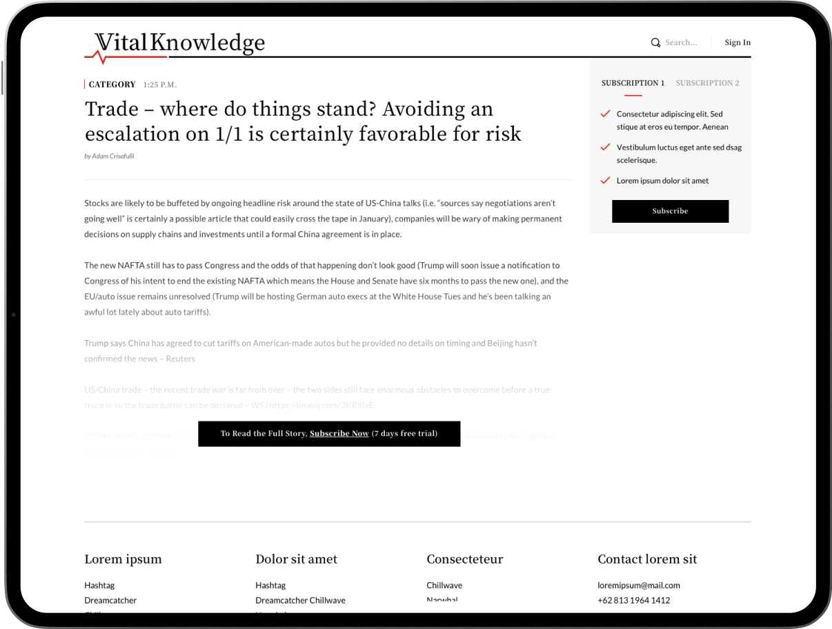 Adam knows how to write market commentary, analyze important events, and attract the attention of hedge funds, mutual funds, family offices, and private equity firms. He needed help with the software side of his new business venture: building a subscription service to easily distribute this content to paying customers.
