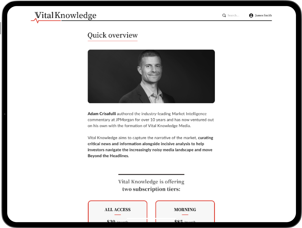 Adam Crisafulli authored the industry-leading Market Intelligence commentary at JPMorgan for over 10 years. With Designli’s help, he ventured out on his own - and launched his own successful media company, selling market commentary to investors.